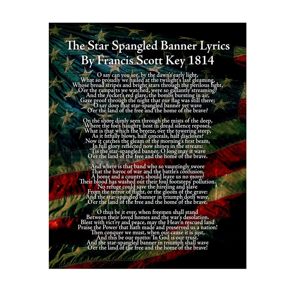 "Star Spangled Banner Lyrics"-National Anthem Song Art Wall Decor -11 x 14" American Flag Poster Print-Ready to Frame. Patriotic Home-Office-School-Garage-Cave-History Classroom Decor.