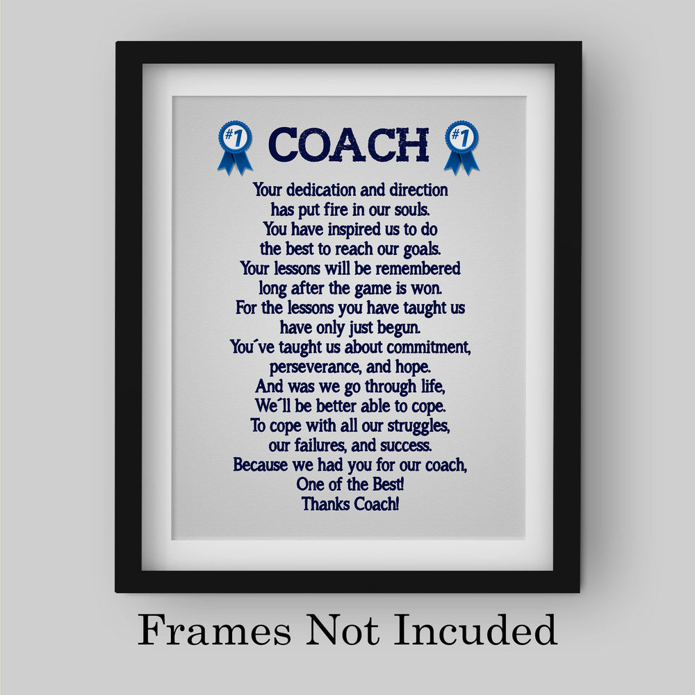 "Thanks Coach"- Motivational Quotes Wall Art -8 x 10" Inspirational Team Sports Poem Print -Ready to Frame. Ideal for Home-School-Gym-Coach's Office-Locker Room Decor. Great Gift for All Coaches!